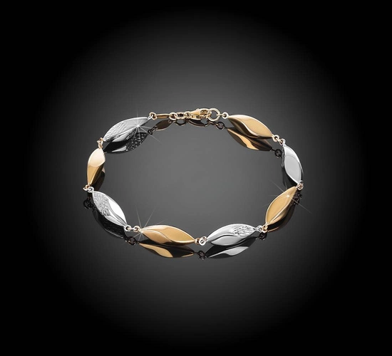 Połączenie elegancji i wyjątkowego rzemiosła jubilerskiego. Ta niezwykła bransoletka została wykonana z wysokiej jakości żółtego i białego złota próby 333, co nadaje jej unikalny charakter i ponadczasowy blask. Każdy element został ręcznie dopracowany i zdobiony przez mistrza jubilerstwa, dzięki czemu bransoletka zachwyca oryginalnym designem oraz precyzją wykonania. Dwukolorowe złoto tworzy subtelny kontrast, który podkreśla piękno detali i sprawia, że biżuteria prezentuje się niezwykle efektownie.