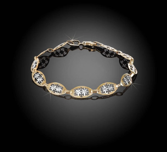 Połączenie elegancji i wyjątkowego rzemiosła jubilerskiego. Ta niezwykła bransoletka została wykonana z wysokiej jakości żółtego i białego złota próby 333, co nadaje jej unikalny charakter i ponadczasowy blask. Każdy element został ręcznie dopracowany i zdobiony przez mistrza jubilerstwa, dzięki czemu bransoletka zachwyca oryginalnym designem oraz precyzją wykonania. Dwukolorowe złoto tworzy subtelny kontrast, który podkreśla piękno detali i sprawia, że biżuteria prezentuje się niezwykle efektownie.