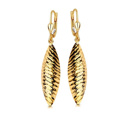 Złote kolczyki próby 333 to kwintesencja elegancji i kobiecego stylu. Smukła, wydłużona forma z efektownym diamentowanym wykończeniem przyciąga wzrok, odbijając światło w zachwycający sposób. To biżuteria, która pięknie podkreśla rysy twarzy i dodaje blasku każdej stylizacji – od codziennej po wieczorową.