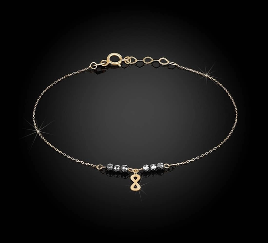 Złota bransoletka 585 z hematytem - nieskończoność