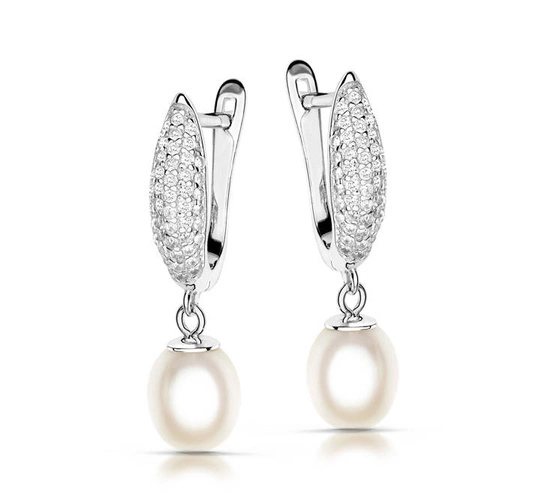 Oferowane Państwu kolczyki zostały wykonane z najwyższej jakości rodowanego* srebra próby 925. Niewątpliwie ich największym atutem są szlachetne perły i diamentowe cyrkonie*. W połączeniu z wysoką jakością wykonania otrzymują Państwo biżuterię o czarującym i przykuwającym oko wyglądzie.