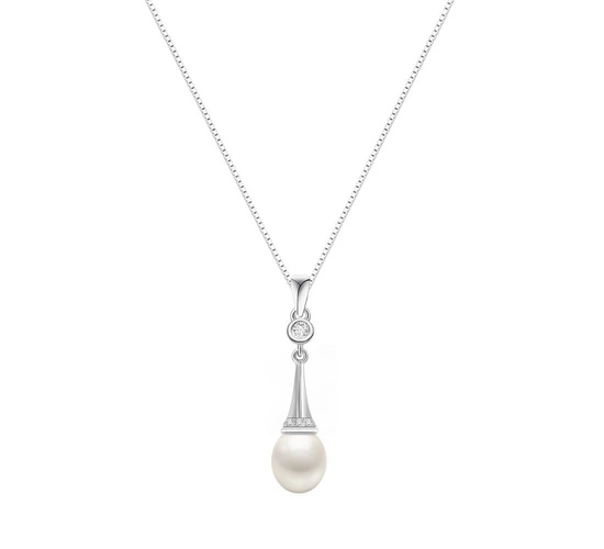 Naszyjnik srebrny 925 z perłą i diamentowymi cyrkoniami