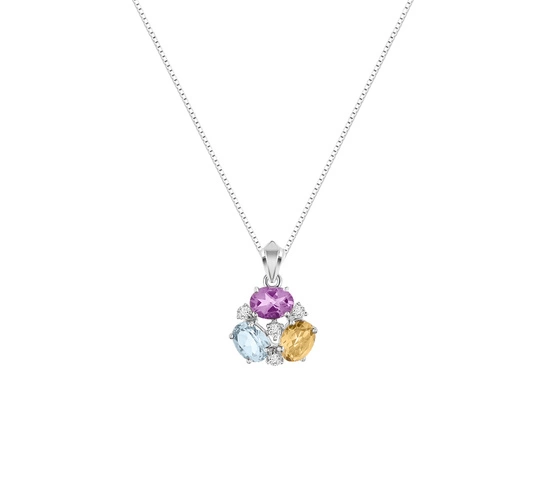 Naszyjnik srebrny 925 z naturalnym ametystem, topazem, cytrynem i diamentowymi cyrkoniami