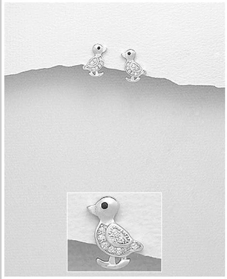 Srebrne kolczyki 925 z diamentowymi cyrkoniami - kaczuszki