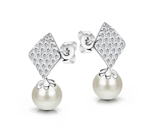 Oferowane Państwu kolczyki zostały wykonane z najwyższej jakości rodowanego* srebra próby 925. Niewątpliwie ich największym atutem są szlachetne perły i diamentowe cyrkonie*. W połączeniu z wysoką jakością wykonania otrzymują Państwo biżuterię o czarującym i przykuwającym oko wyglądzie.