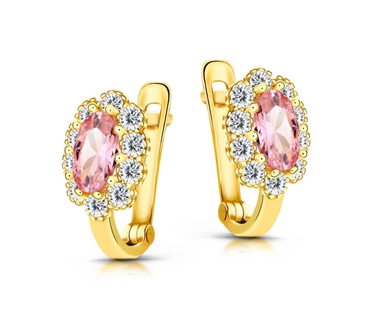 Złote kolczyki wykonane z złota próby 333 to wyjątkowy model, który zachwyca klasycznym urokiem i kobiecym wdziękiem. Ich centralnym elementem jest krystaliczna cyrkonia w szlifie owalnym, otoczona misternie oprawionymi, mniejszymi kamieniami, tworzącymi efektowną kompozycję przypominającą kwiat.