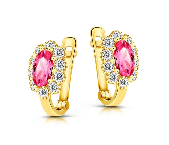 Złote kolczyki wykonane z złota próby 333 to wyjątkowy model, który zachwyca klasycznym urokiem i kobiecym wdziękiem. Ich centralnym elementem jest krystaliczna cyrkonia w szlifie owalnym, otoczona misternie oprawionymi, mniejszymi kamieniami, tworzącymi efektowną kompozycję przypominającą kwiat.