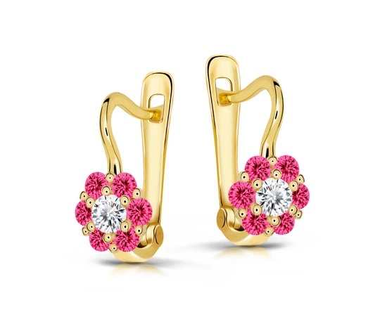 Te urocze złote kolczyki próby 333 w kształcie kwiatuszków z różowymi i białymi cyrkoniami to idealny wybór dla dziewczynki, która kocha błysk i delikatne kolory. Ich subtelny design wprowadza odrobinę magii i elegancji do dziecięcego świata.