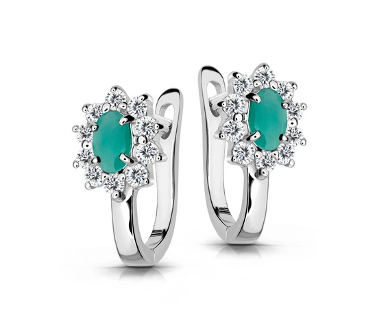 Srebrne kolczyki 925 z naturalnymi szmaragdami i diamentowymi cyrkoniami - kwiatki