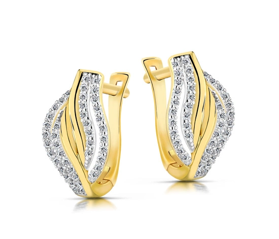 Dynamiczna, falująca linia sprawia, że te kolczyki emanują lekkością i kobiecym wdziękiem. Złoto próby 585 subtelnie przeplata się z rzędami lśniących cyrkonii, które nadają biżuterii wyjątkowej głębi i blasku. To model, który łączy w sobie elegancję i nowoczesny charakter, idealny do podkreślenia wyjątkowych chwil.