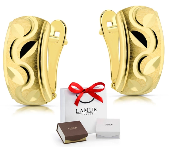 Delikatne motywy roślinne nadają tym kolczykom niezwykle kobiecego charakteru. Subtelnie rzeźbione wzory liści w połączeniu z eleganckim złotem próby 585 sprawiają, że biżuteria emanuje naturalnym urokiem i ponadczasową elegancją.