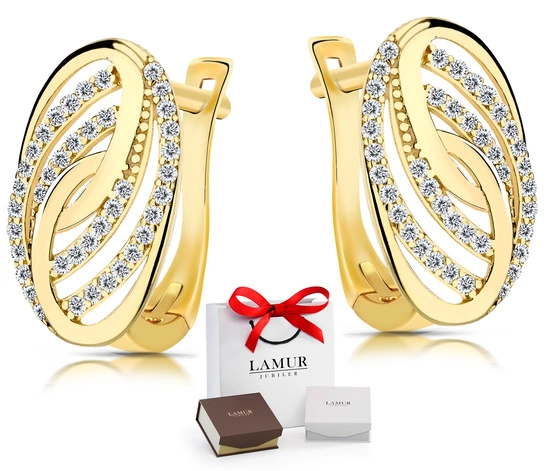 Te wyjątkowe kolczyki urzekają połączeniem szlachetnego złota próby 585 i perfekcyjnie osadzonych cyrkonii, które tworzą misterną, ażurową kompozycję. Delikatne linie przeplatają się niczym subtelny ornament, podkreślając wyrafinowany charakter biżuterii. To model, który przyciąga spojrzenia i dodaje każdej stylizacji niezwykłego blasku.