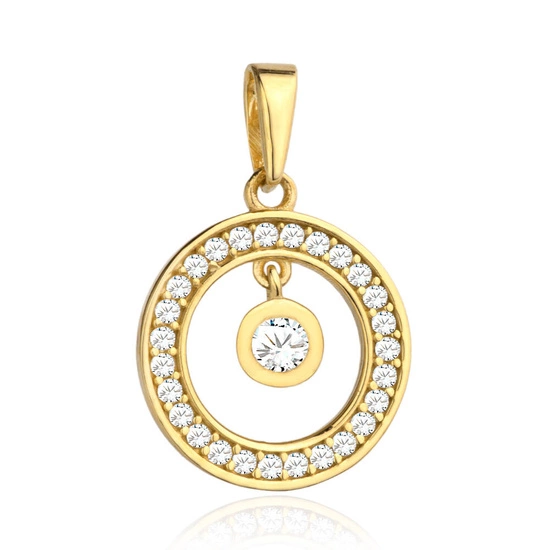Złota zawieszka 585 - ring z cyrkoniami i wiszącą cyrkonią