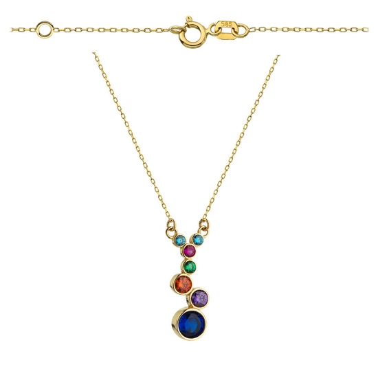 Złoty naszyjnik 585 - z kolorowymi cyrkoniami