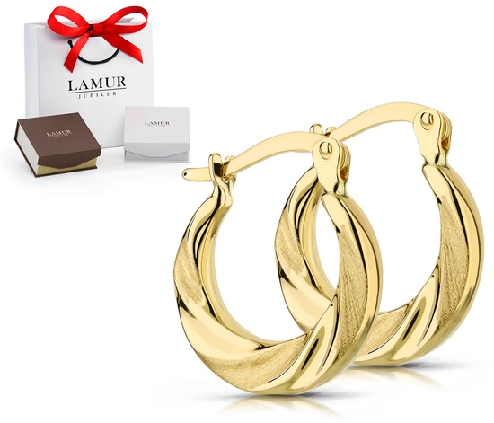 Delikatne, ale wyraziste – te złote kolczyki próby 375 zachwycają eleganckim, skręconym wzorem, który pięknie odbija światło i nadaje im lekkości. Połączenie polerowanej i satynowanej powierzchni tworzy wyjątkowy efekt kontrastu, dzięki czemu biżuteria prezentuje się niezwykle szlachetnie.