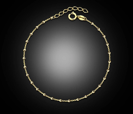 Złota bransoletka z drobnymi kuleczkami to wyrafinowany dodatek, który łączy w sobie subtelność i elegancję. Jej delikatny łańcuszek ozdobiony regularnie rozmieszczonymi złotymi kulkami pięknie połyskuje w świetle, dodając stylizacjom kobiecego wdzięku. Wykonana ze złota próby 375, zachwyca swoim ciepłym odcieniem i ponadczasowym designem.