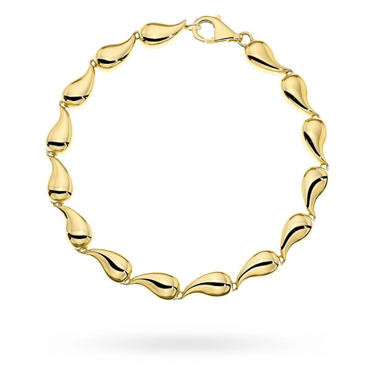 Subtelna, a zarazem niezwykle elegancka bransoletka, wykonana z najwyższej jakości złota próby 585. Jej wyjątkowy charakter tworzą ogniwa w kształcie złotych kropel, które pięknie odbijają światło i układają się harmonijnie na nadgarstku. To połączenie klasycznej formy z nowoczesnym designem, które zachwyca swoją lekkością i finezją.