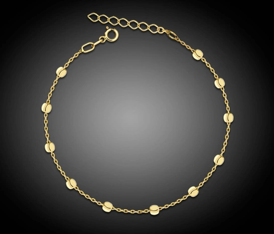 Ta delikatna bransoletka została wykonana ze złota próby 585 i ozdobiona drobnymi, połyskującymi kuleczkami rozmieszczonymi na całej długości łańcuszka. Jej minimalistyczny design sprawia, że jest niezwykle uniwersalna – doskonale prezentuje się zarówno solo, jak i w zestawieniu z innymi bransoletkami, tworząc modny komplet.