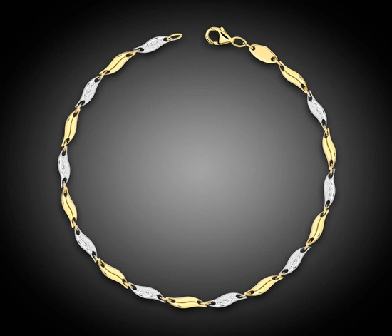 Połączenie elegancji i wyjątkowego rzemiosła jubilerskiego. Ta niezwykła bransoletka została wykonana z wysokiej jakości żółtego i białego złota próby 585, co nadaje jej unikalny charakter i ponadczasowy blask. Każdy element został ręcznie dopracowany i zdobiony przez mistrza jubilerstwa, dzięki czemu bransoletka zachwyca oryginalnym designem oraz precyzją wykonania. Dwukolorowe złoto tworzy subtelny kontrast, który podkreśla piękno detali i sprawia, że biżuteria prezentuje się niezwykle efektownie.