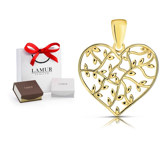 Złota zawieszka 375 - ażurowe serce z roślinnym wzorem