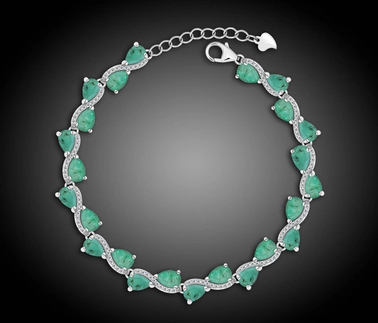 Bransoletka srebrna 925 nieskończoność z 22 szmaragdami i diamentowymi cyrkoniami