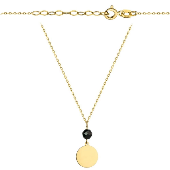 Złoty naszyjnik z kołem i onyksem syntetycznym to symbol prostoty, stylu i kobiecej siły. Delikatny, a jednocześnie wyrazisty – stanie się ulubionym dodatkiem, który podkreśli elegancję w każdej odsłonie.