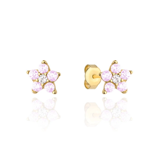 Złote kolczyki 585 z różowymi cyrkoniami - kwiatki