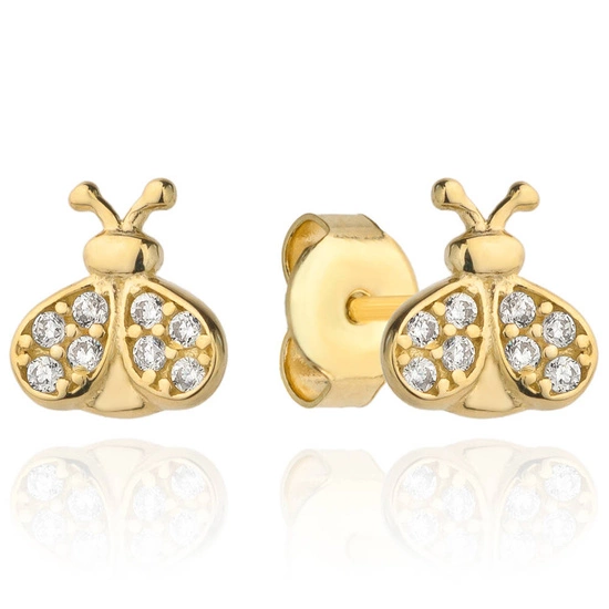 Złote kolczyki 585 z cyrkoniami - biedronki