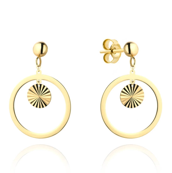 Złote kolczyki próby 585 to biżuteria, która łączy klasyczną formę z nowoczesnym wykończeniem. Smukłe koła ozdobione geometrycznym elementem o diamentowanej fakturze tworzą wyjątkowy kontrast światła i cienia, podkreślając ich artystyczny charakter. To dodatek, który doda Twojej stylizacji lekkości, a zarazem przyciągnie spojrzenia swoją oryginalnością.