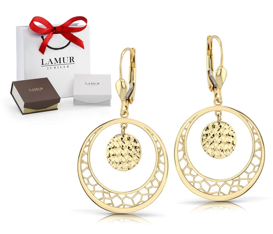 Złote kolczyki 585 ażurowe koła - wiszące