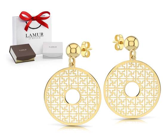 Wyjątkowe kolczyki wiszące, które zachwycają nowoczesnym, geometrycznym wzorem. Delikatne ażurowe koła o misternym wzorze prezentują się lekko i efektownie, a ich pełen symetrii motyw dodaje biżuterii elegancji i artystycznego charakteru. To propozycja dla kobiet, które kochają złoto w nieoczywistym, designerskim wydaniu.