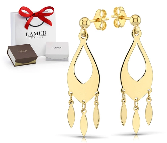 Złote kolczyki 585 łezki - wiszące