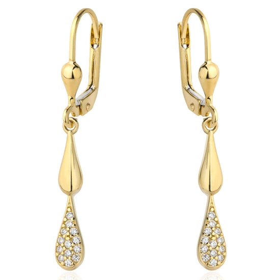 Złote kolczyki 585 wiszące krople z cyrkoniami