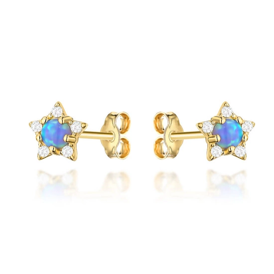 Złote kolczyki 585 z opalitem i cyrkoniami - gwiazdki