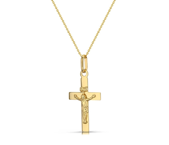 Biżuteria została ręcznie wykonana przez doświadczonych jubilerów, co gwarantuje najwyższą jakość i wyjątkową precyzję w każdym detalu. Połyskujące złoto podkreśla duchowy wymiar krzyża, nadając mu subtelnego, ale wyrafinowanego charakteru.