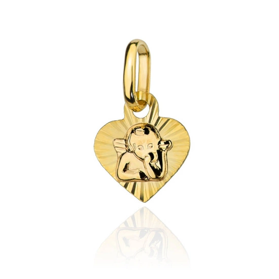 Złota zawieszka 585 - aniołek w diamentowanym w sercu