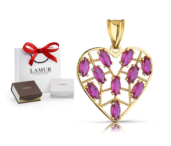 Złota zawieszka 585 - serce z rubinowymi cyrkoniami