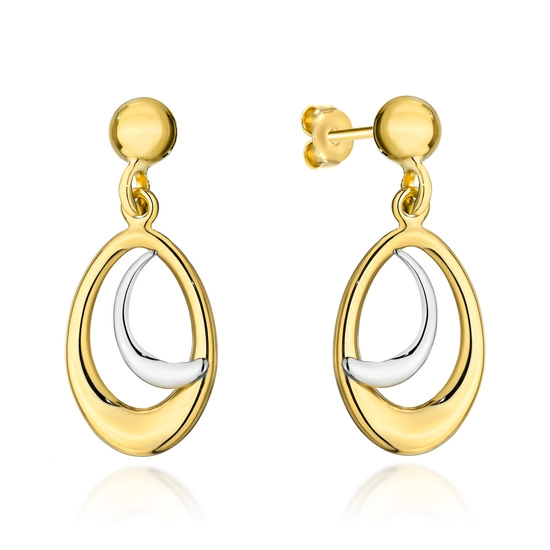 Złote kolczyki próby 585 to subtelne połączenie klasyki z nowoczesnym wzornictwem. Delikatna forma w kształcie łezki została ozdobiona elementami z białego złota, które tworzą kształt księżyców, nadając całości wyjątkowego uroku i symboliki. Kontrast żółtego i białego złota podkreśla elegancję projektu oraz przyciąga wzrok swoją oryginalnością.