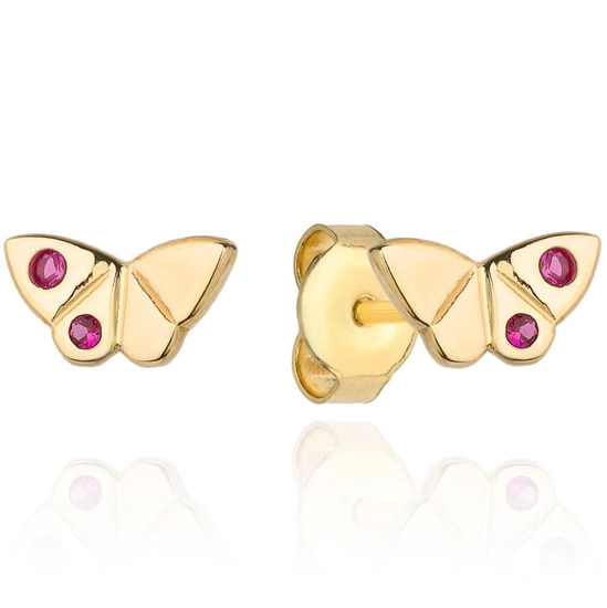 Złote kolczyki 585 motylki z rubinowymi cyrkoniami