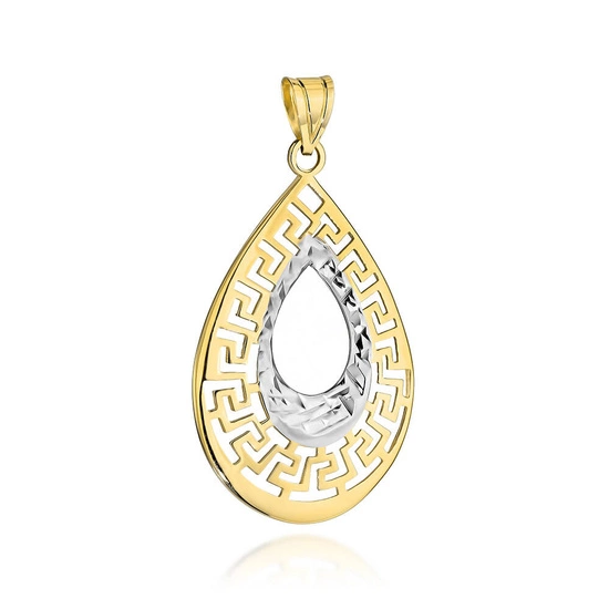 Złota zawieszka 585 w kształcie łezki - grecka z białym złotem
