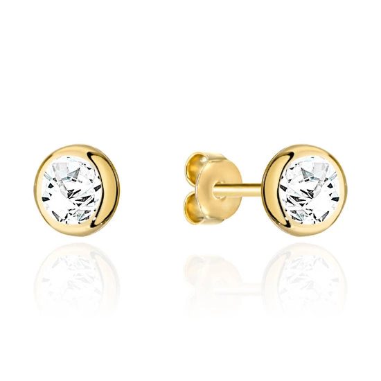 Złote kolczyki sztyfty próby 585 to klasyczny, a zarazem niezwykle efektowny model, który zachwyca elegancją w minimalistycznej odsłonie. Centralnym punktem biżuterii jest lśniąca cyrkonia, subtelnie oprawiona w gładką, złotą oprawę, która pięknie podbija jej blask i nadaje całości nowoczesnego charakteru. To wzór, który doskonale łączy ponadczasową prostotę z wyrafinowaną formą.
