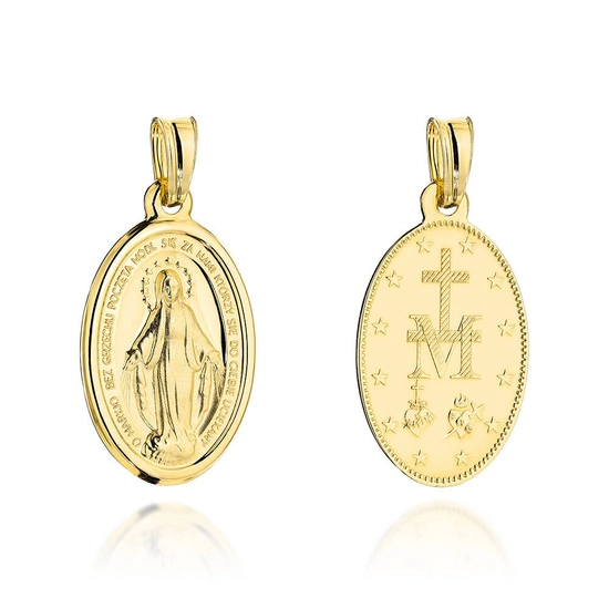 Złota zawieszka 585 - cudowny medalik z polską modlitwą