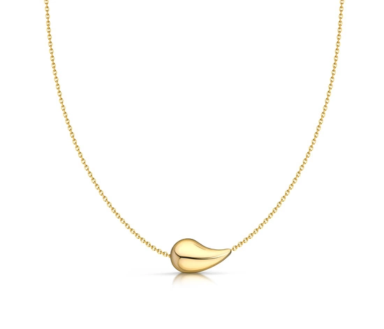 Złoty naszyjnik próby 375 to połączenie minimalizmu, klasy i symbolicznego znaczenia. Delikatna zawieszka w kształcie kropli, utożsamiana z czystością i harmonią, subtelnie podkreśla kobiecy dekolt, dodając mu blasku i lekkości. Jej ponadczasowy kształt sprawia, że naszyjnik doskonale sprawdza się zarówno w codziennych stylizacjach, jak i podczas wyjątkowych okazji.