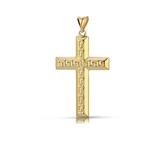 Złoty krzyżyk 585 - zawieszka z greckim wzorem