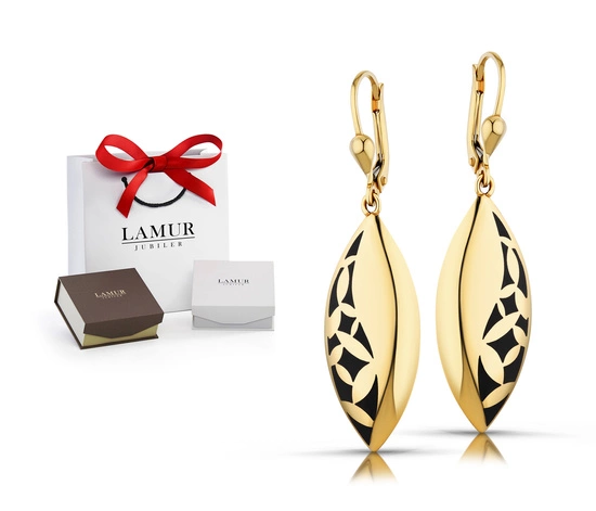 Złote kolczyki 585 - wiszące z kwiatowym wzorem