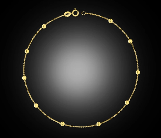 Delikatna i stylowa złota bransoletka próby 585 ozdobiona została drobnymi kuleczkami, które subtelnie mienią się w świetle, nadając całości lekkości i elegancji. To ponadczasowy wzór, który doskonale komponuje się zarówno z codziennymi, jak i bardziej odświętnymi stylizacjami.