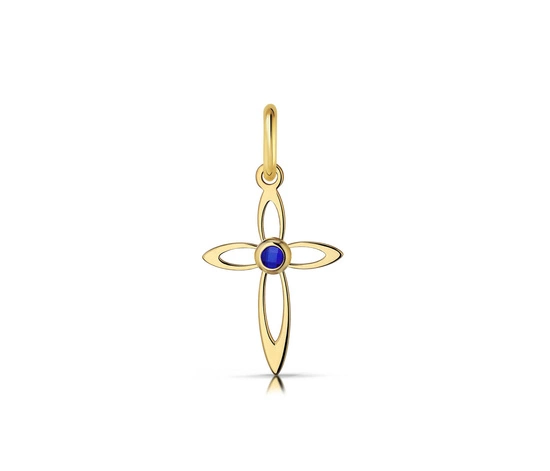 Złoty krzyżyk 585 - zawieszka z niebieską cyrkonią
