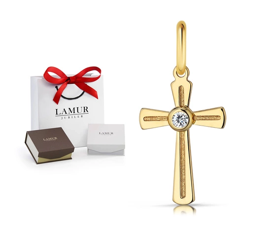 Złoty krzyżyk 585 - zawieszka z cyrkonią