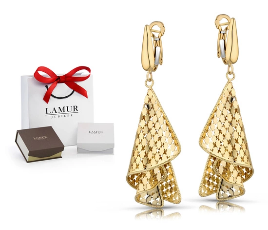 Złote kolczyki 585 wiszące - eleganckie i ażurowe