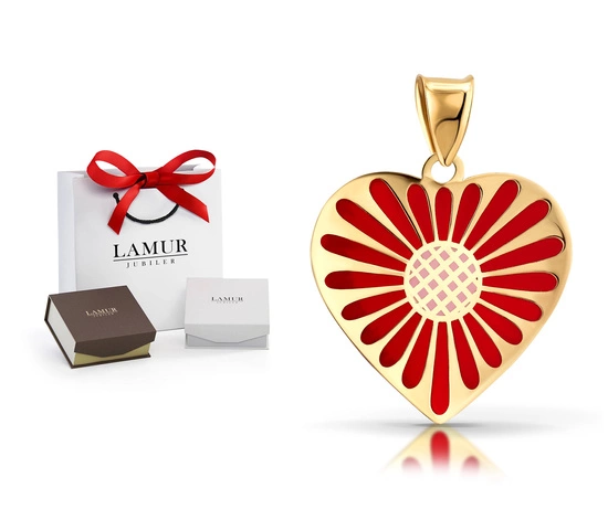 Złota zawieszka 585 - czerwone serce, serduszko